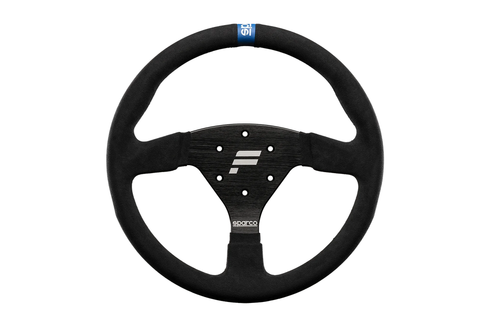 Replica of the SPARCO® R383 wheel. Multi-purpose, fully round wheel with ergonomic grips. Wrapped in genuine Alcantara® for comfort and grip. Fits perfectly with the Podium Button Module Rally (sold separately).