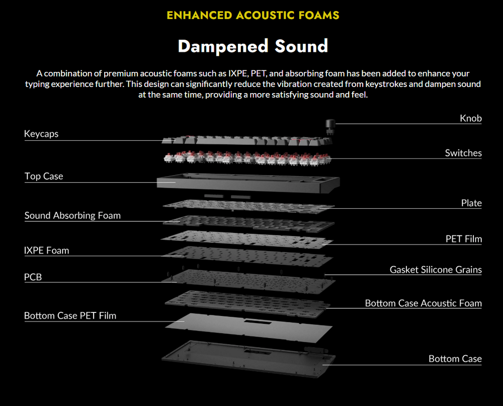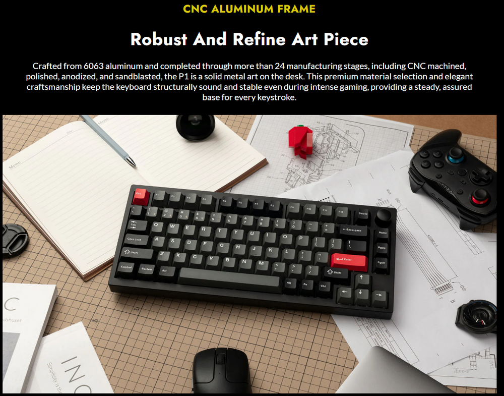 Meet the Lemokey P1, a 75% layout QMK custom gaming keyboard with a CNC machined aluminum body. Packed with many pro-grade features of a lightning-fast 1000 Hz polling rate, knob design, gasket structure, upgraded acoustic foam, and double-shot PBT keycaps, the Lemokey P1 is ready to take you to dominate the game.