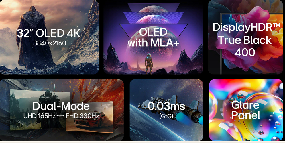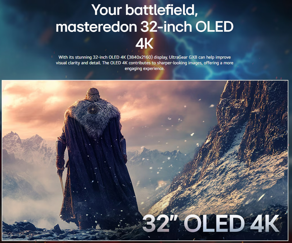 32" 4K UHD Glossy OLED Display - Experience ultra-sharp visuals and lifelike color on a stunning 32-inch 4K UHD (3840 x 2160) glossy OLED display. Every detail pops with depth and vibrancy, bringing your favorite games and content to life.