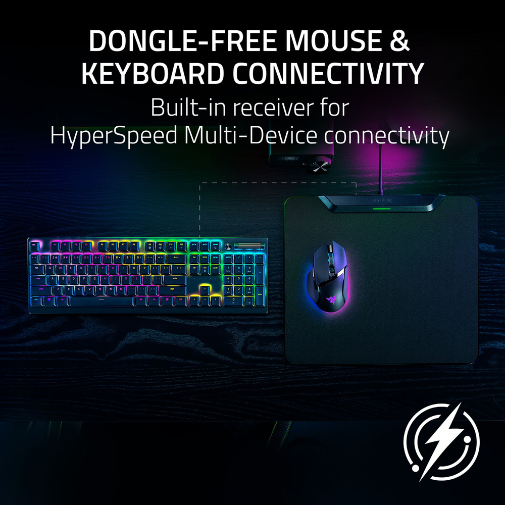Tap into unlimited power with the Razer HyperFlux V2 Wireless Charging System. Pair it with our wireless gaming mice for a dongle-free setup that continuously powers your mouse as you game. Choose between a hard or cloth mouse pad to swipe with greater speed or control.