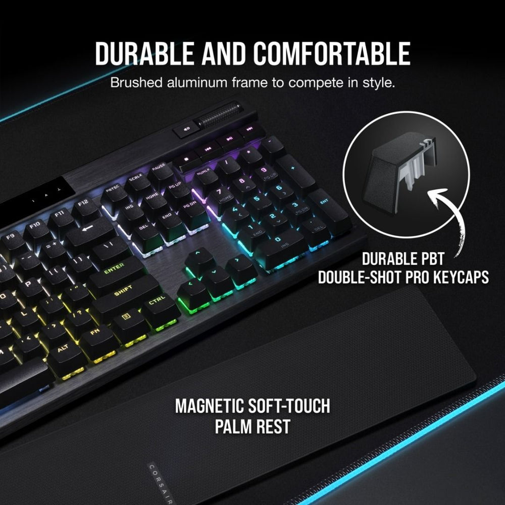 Corsair K70 PRO RGB Optical-Mechanical Gaming Keyboard - OPX Linear Switches, PBT Double-Shot Keycaps, 8,000Hz Hyper-Polling, Magnetic Soft-Touch Palm Rest - NA Layout, QWERTY - Black