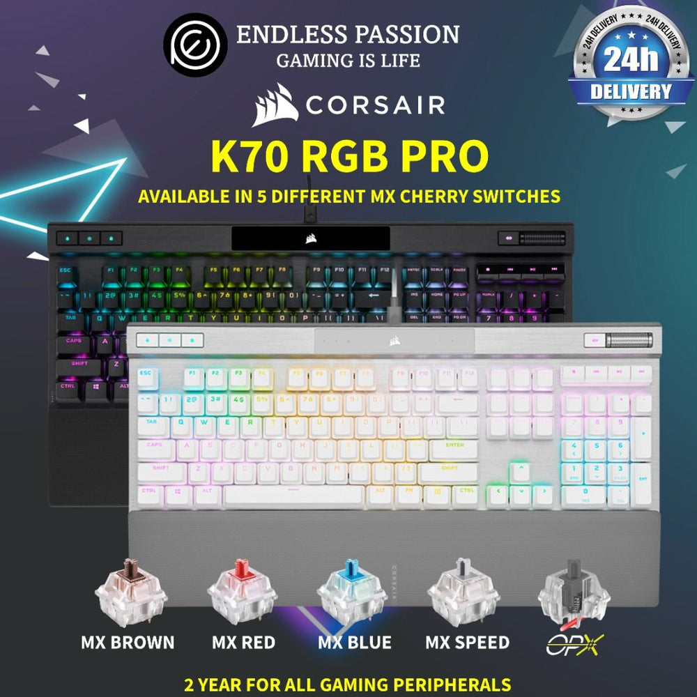 Corsair K70 PRO RGB Wired Optical-Mechanical Gaming Keyboard - Black / Cherry MX RGB Blue is backordered and will ship as soon as it is back in stock.