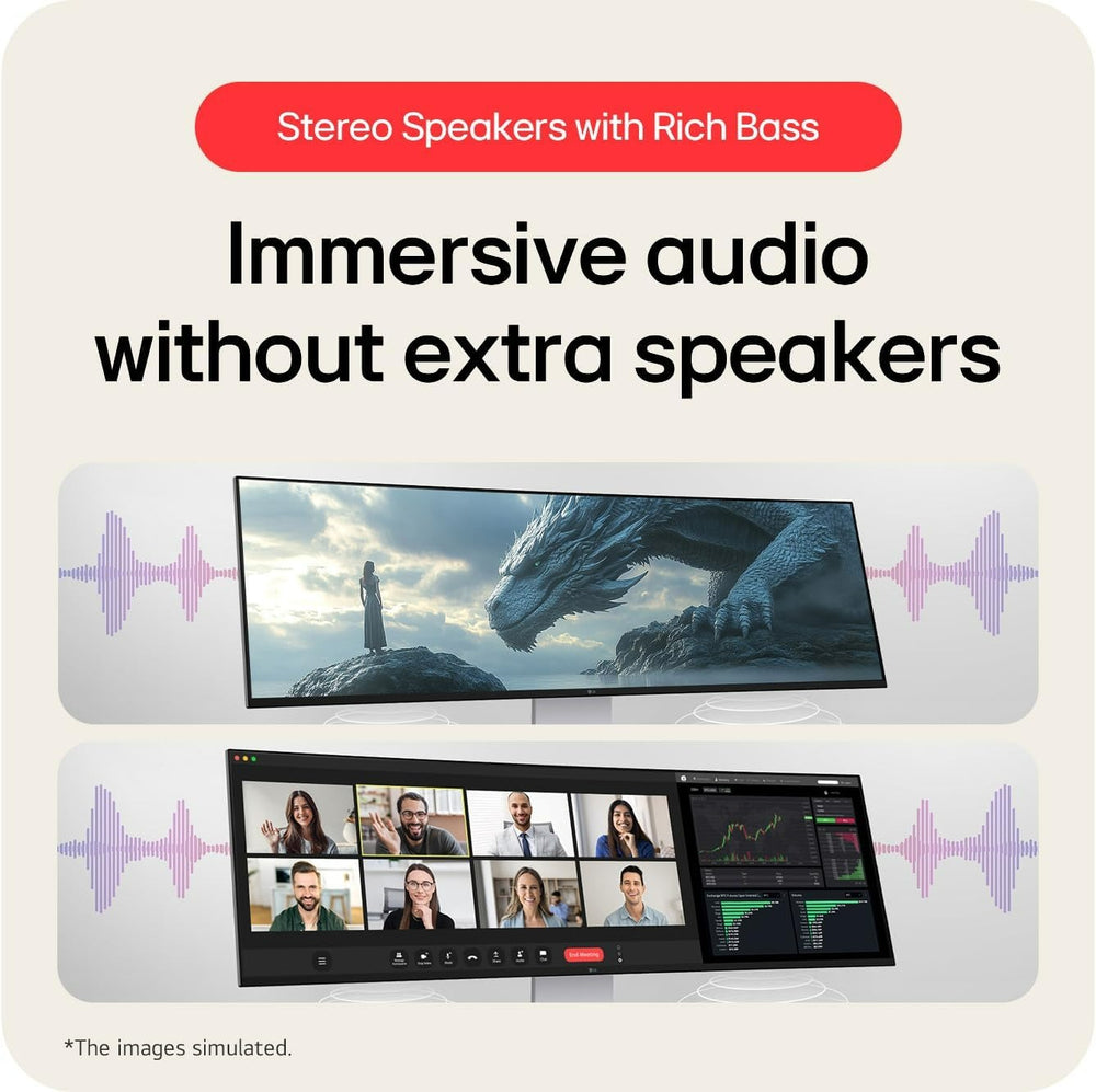 49-inch Dual QHD monitor with Nano IPS delivers pro-grade colour and clarity. 98% DCI-P3, DisplayHDR 400, and factory calibration ensure vivid, accurate visuals. Smooth 144Hz refresh for creative and multitasking pros.