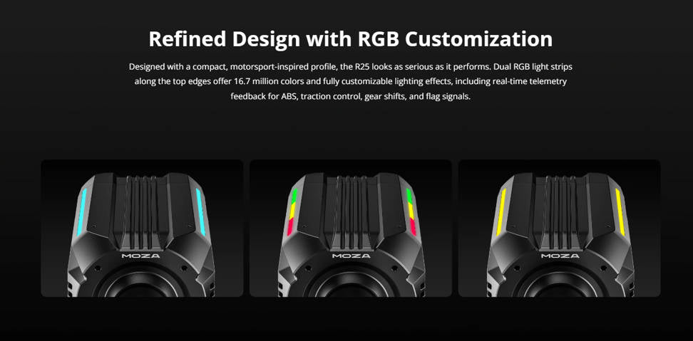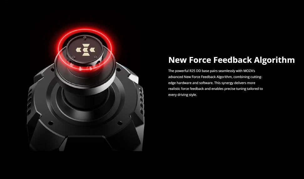 Unlock pro-level sim racing precision with the MOZA R25 Ultra True Torque Direct Drive Wheel Base. Featuring a 25Nm sustained torque motor, built-in true torque sensor, zero-cogging flat-wire motor, 21-bit magnetic encoder, and advanced FFB algorithm, the R25 delivers unmatched responsiveness, realism, and control for esports and professional racing enthusiasts.