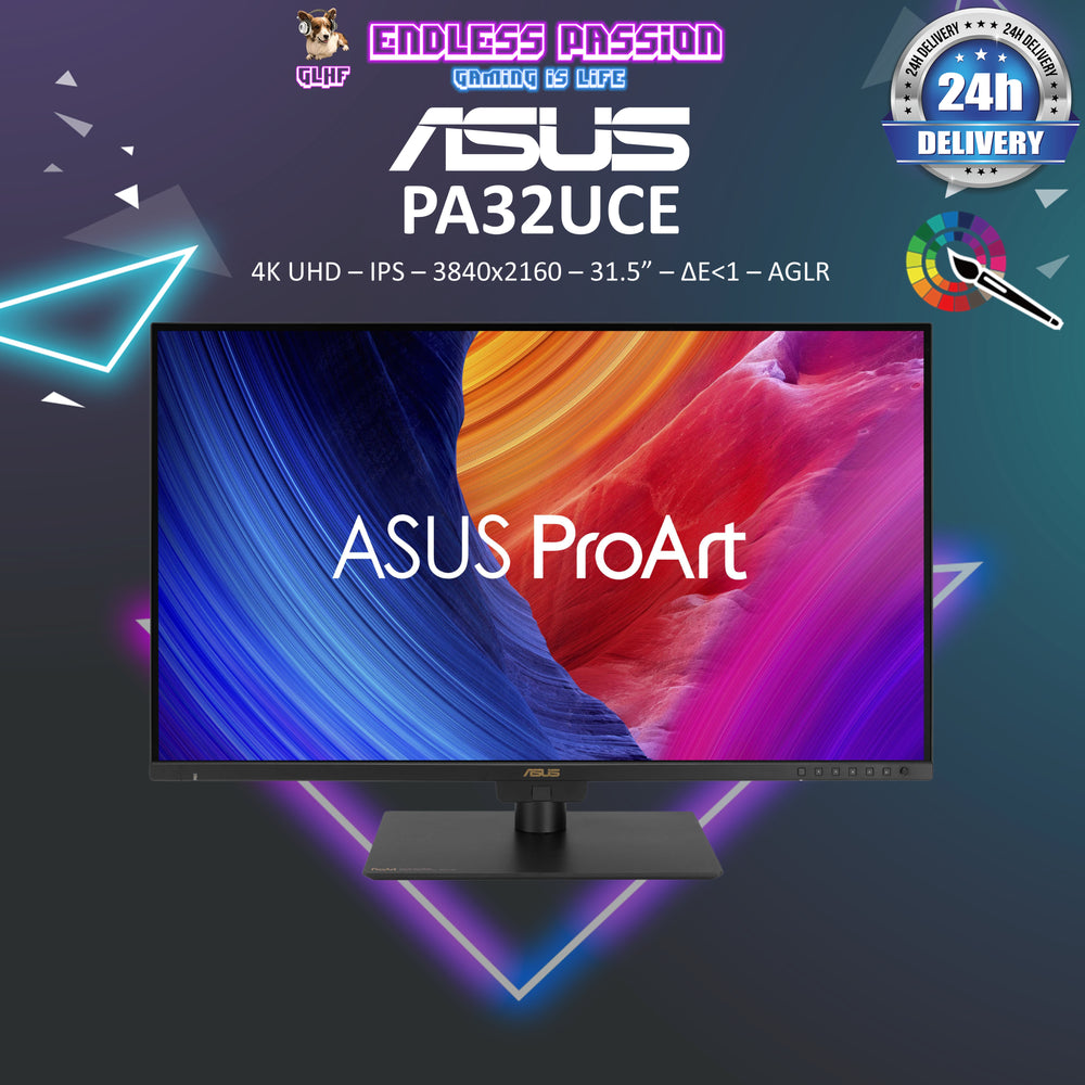 ASUS ProArt Display PA32UCE Professional Monitor – 32" (31.5" viewable), 4K UHD, IPS, 600 nits, 98% DCI-P3, Delta E<1 color accuracy, Built-in Motorized Colorimeter, Self / Auto Calibration, Hardware Calibration, HDR-10, HLG, Auto KVM, LuxPixel™ AGLR, Light Sync, USB-C® PD 96W, ergonomic stand, Calman Ready, ColourSpace Integration