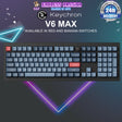 The V6 Max is a QMK custom mechanical keyboard with 2.4 GHz wireless and Bluetooth 5.1 connection. It has a full-size 100% layout and offers a gasket mount design, sound-absorbing foam, double-shot PBT keycaps, and more. The V6 Max is designed for a personalized experience and enhanced typing comfort.
