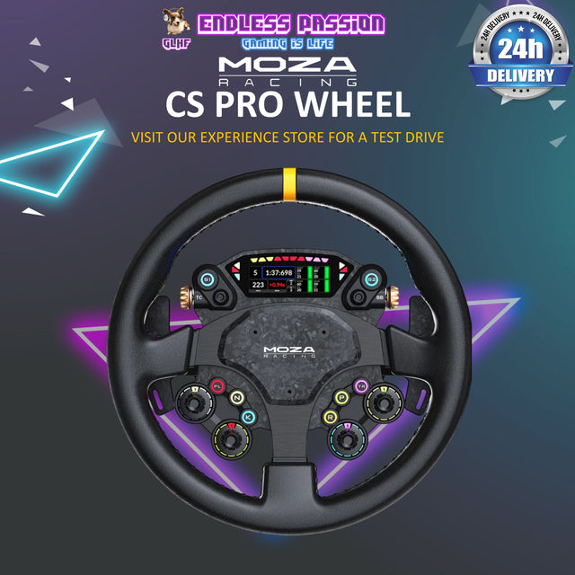 Introducing CS Pro Steering Wheel - a comprehensive racing wheel. Featuring a 325 mm standard rim, customizable high-definition display, carbon fiber-reinforced construction, and a fully programmable lighting and input system, it delivers precise control, fast feedback, and long-stint comfort - built for competitive racing and future expandability.