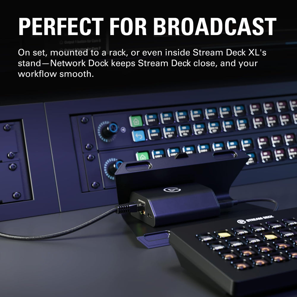 Network Dock breaks the USB barrier with Ethernet and PoE support, so you can power, mount, and deploy Stream Deck in new ways—no PC nearby, no clutter in sight.
