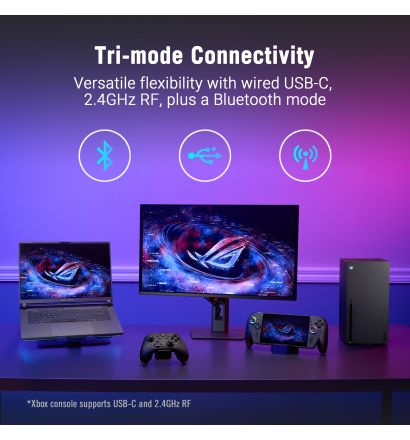 Dominate every game with unmatched speed and accuracy using the ROG Raikiri II Xbox Wireless controller. Arm yourself with a full arsenal of gaming essentials including a lightning-fast 1000Hz polling rate on PC, anti-drift TMR joysticks, triggers with TMR sensor and micro-switch modes, and micro-switches for the D-pad, ABXY buttons, rear buttons and bumpers. Tri-mode connectivity enables versatile multi-platform compatibility and up to 50 hours of battery playtime on a single charge. Plus, a bundled portable charging case offers safe storage on the go while accommodating accessories like the charging stand with feet and swappable joystick caps.