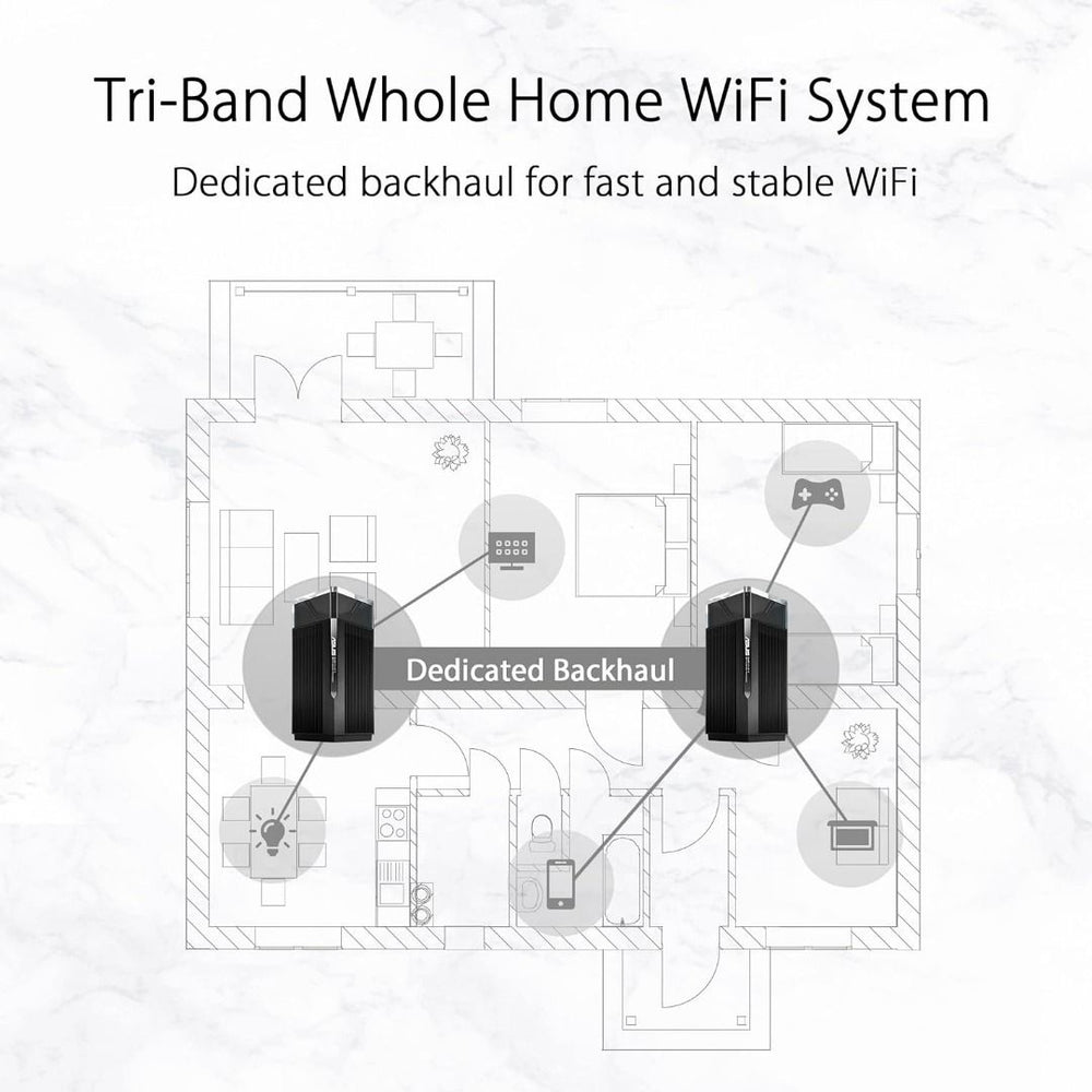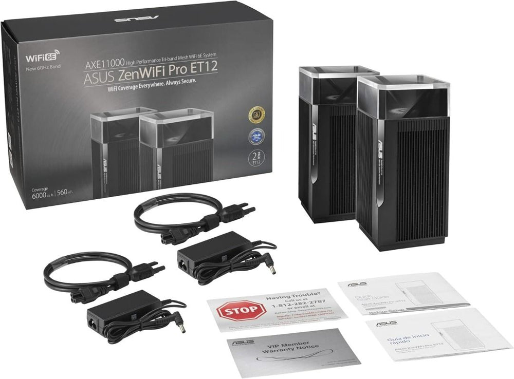 ASUS ZenWiFi Pro ET12 AXE11000 Tri-Band WiFi 6E Mesh Router (2 pack), Coverage up to 6000 sq ft, Subscription-free Network Security, Advanced Parental Controls, Instant Guard, VPN, Dual 2.5G Ports