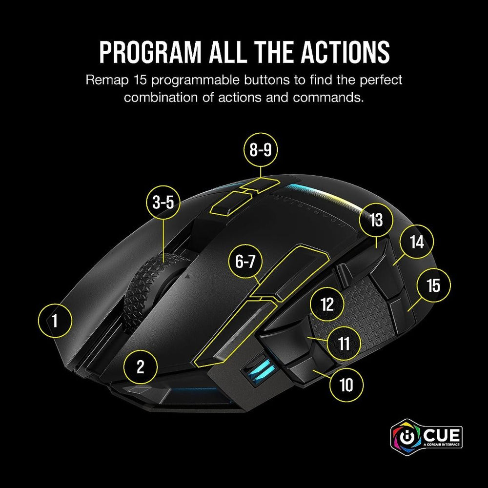 CORSAIR DARKSTAR Wireless MMO/MOBA Gaming Mouse (26,000 DPI Optical Sensor, 15 programmable Buttons, Sub-1ms Slipstream Wireless or Bluetooth®)