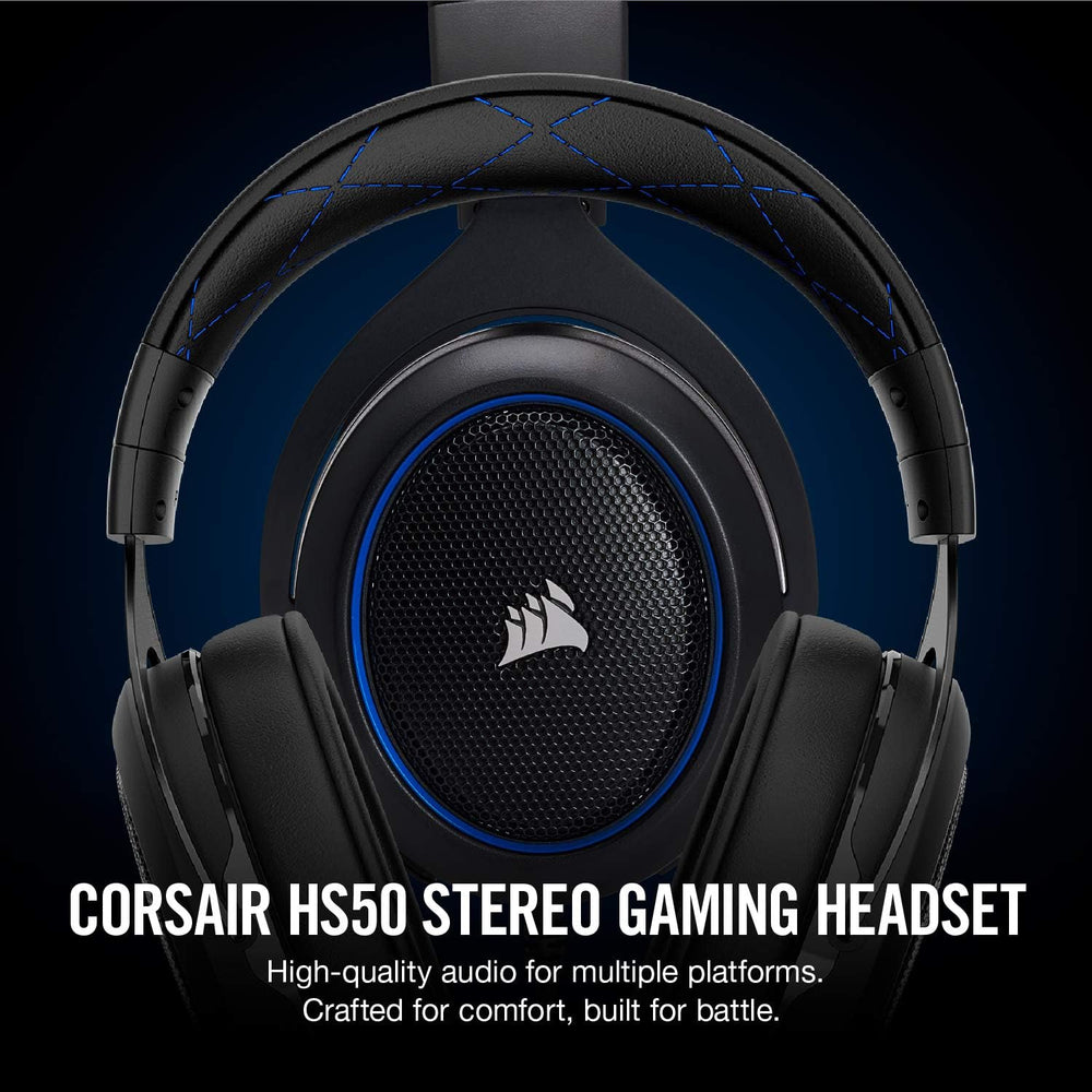 The CORSAIR HS50 Stereo Gaming Headset provides exceptional comfort, superior sound quality, and features rugged metal structural components to ensure long term durability.