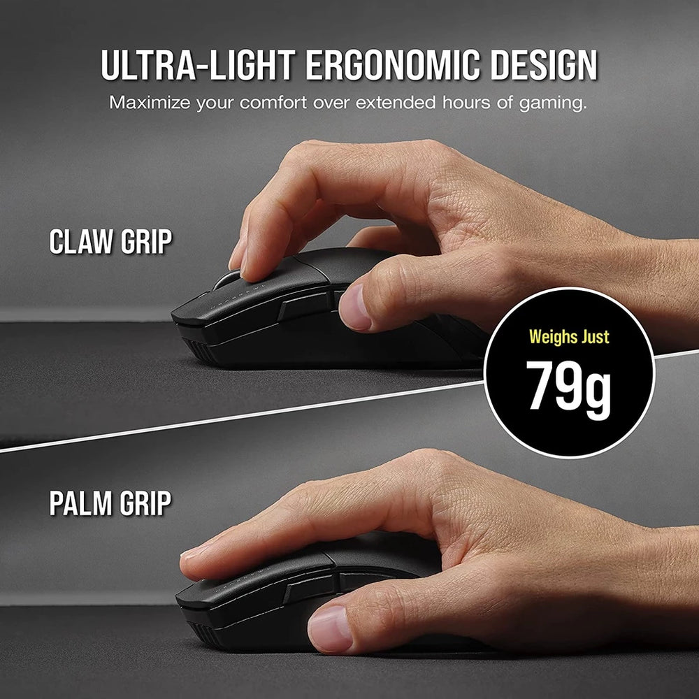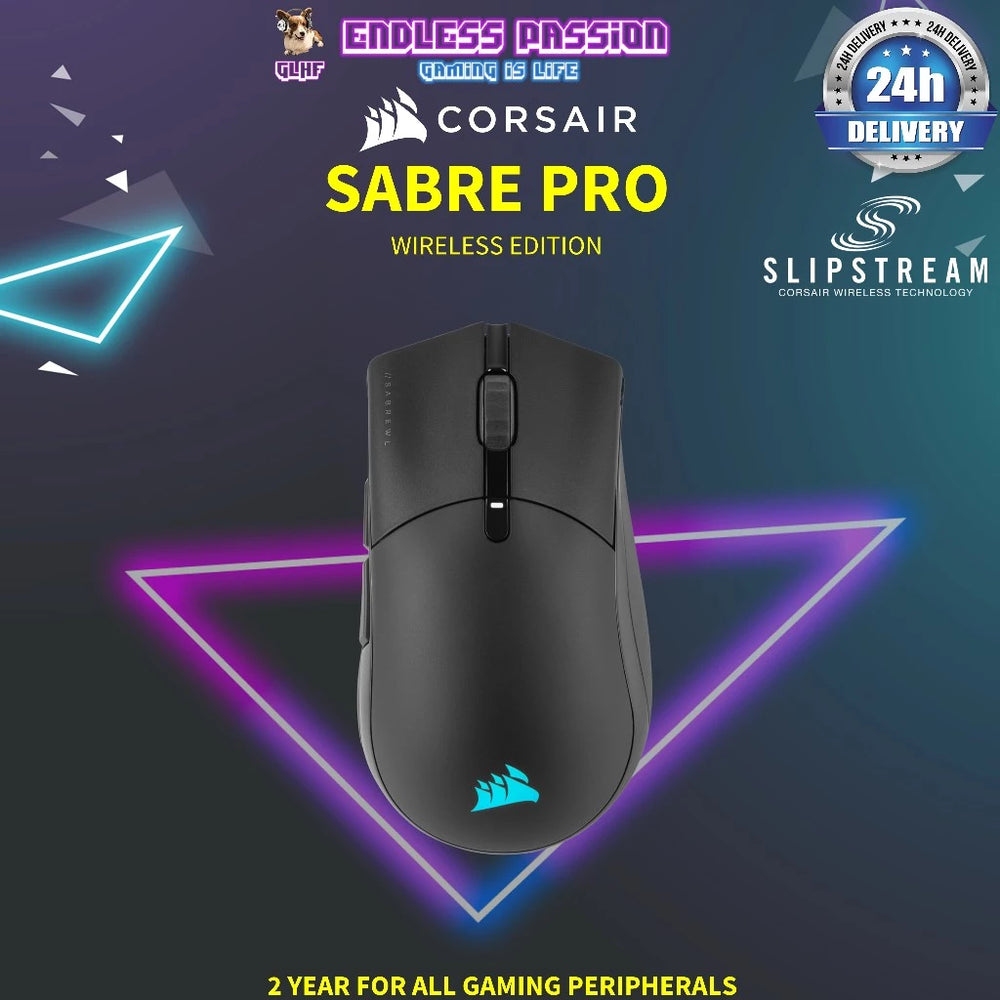 The CORSAIR SABRE RGB PRO WIRELESS Gaming Mouse is designed for and tested by top esports professionals,weighing an ultra-light 79g and equipped with SLIPSTREAM WIRELESS technology for lightning-fast responsiveness.