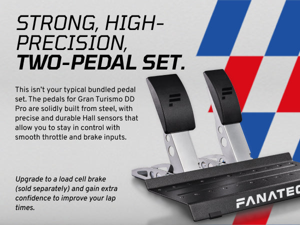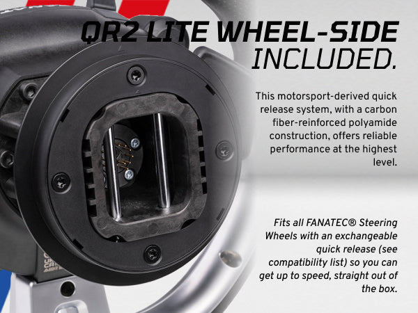 High-performance direct drive wheel base, a licensed Gran Turismo steering wheel and a set of pedals. It features the upgraded QR2 quick release system for a more secure and precise connection.