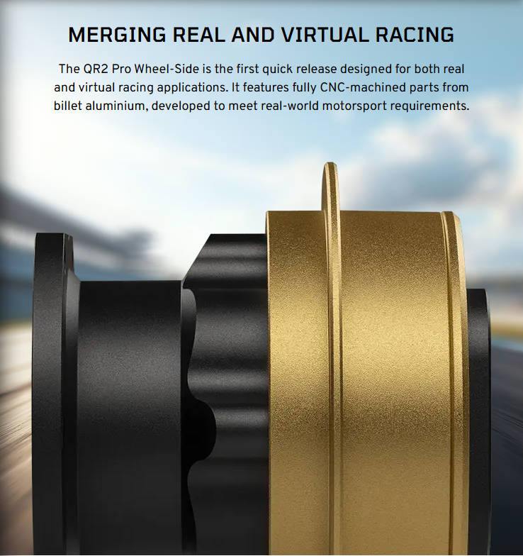 The QR2 Pro Wheel-Side is the first quick release designed for both real and virtual racing applications. It features fully CNC-machined parts from billet aluminium, developed to meet real-world motorsport requirements.