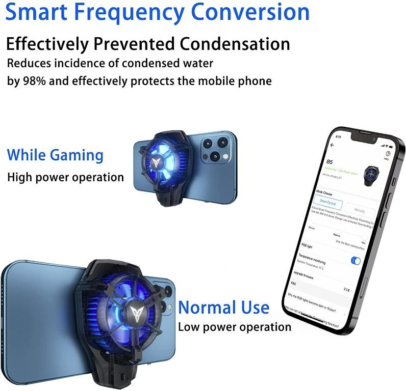 Flydigi B5 Mobile Cooling Fan, Portable Radiator for 2.63-3.5 Inch Smartphones, Upgraded 10-15W Higher Power, Intelligent Frequency Conversion Temperature Control, Larger Cooling Area, Quieter
