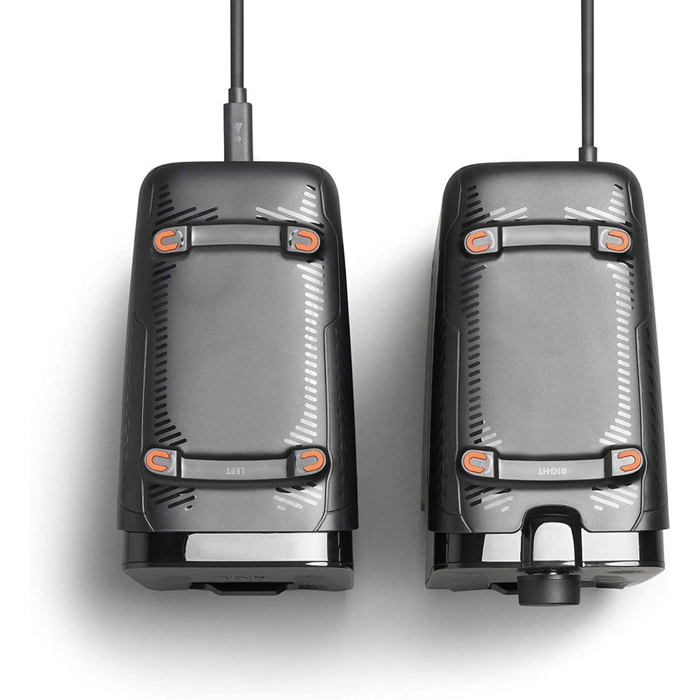 Connect JBL Quantum Duo PC gaming speakers effortlessly to any system via Audio-in and USB. Fully compatible with PC, Mac, Windows and gaming consoles.