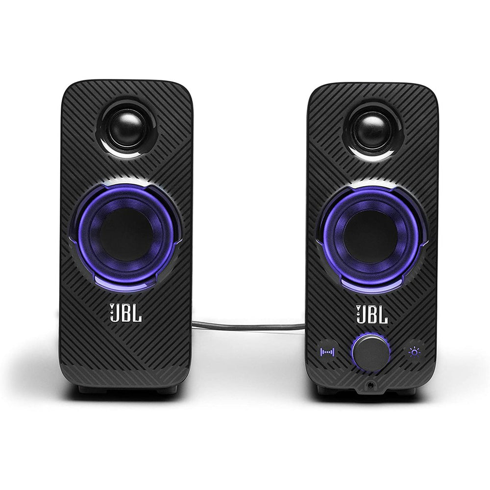 Supercharge your gaming rig with cool lighting effects that take you deeper into the action. JBL Quantum Duo PC gaming speakers come with different colour presets and lighting patterns. Set the mood easily with the lighting control button.