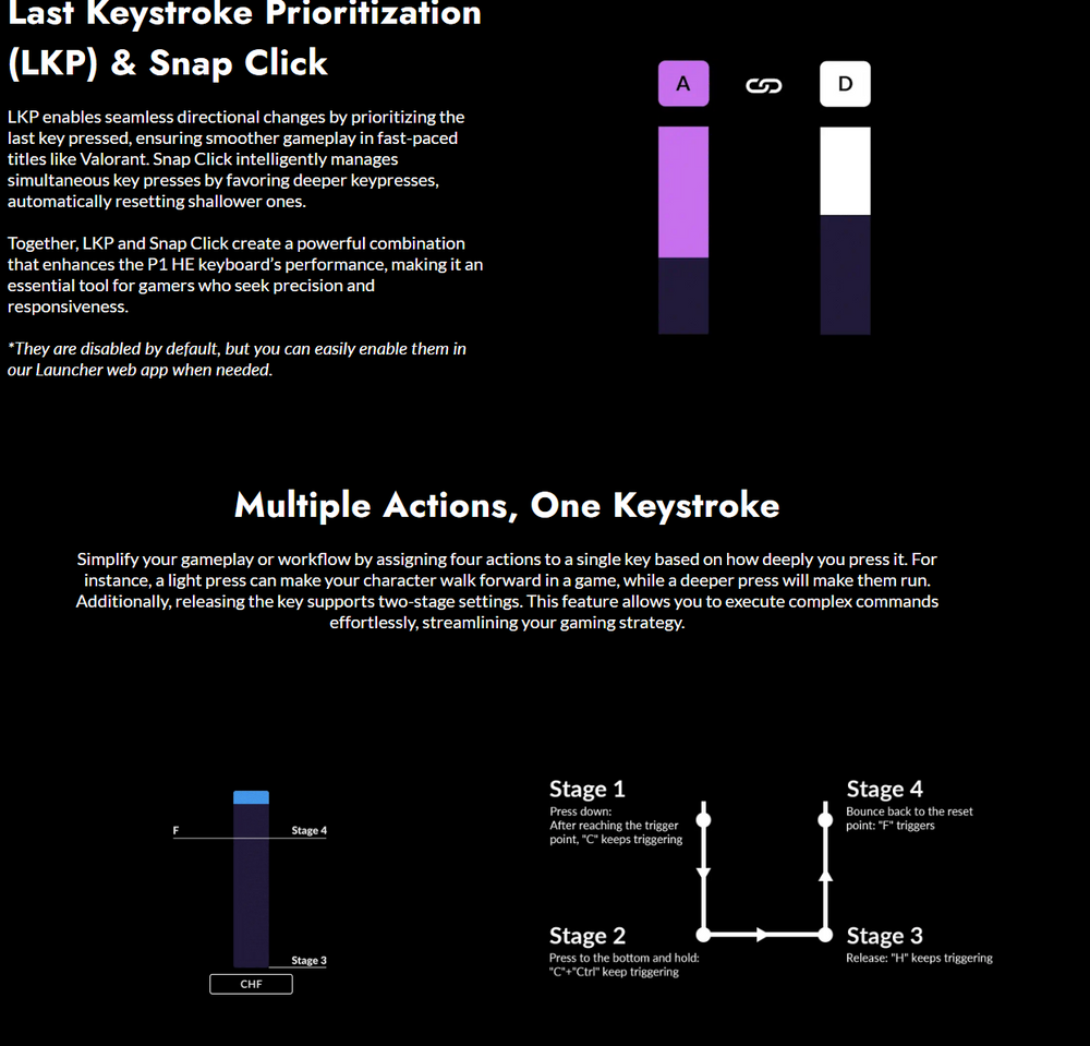 Together, LKP and Snap Click create a powerful combination that enhances the P1 HE keyboard’s performance, making it an essential tool for gamers who seek precision and responsiveness.