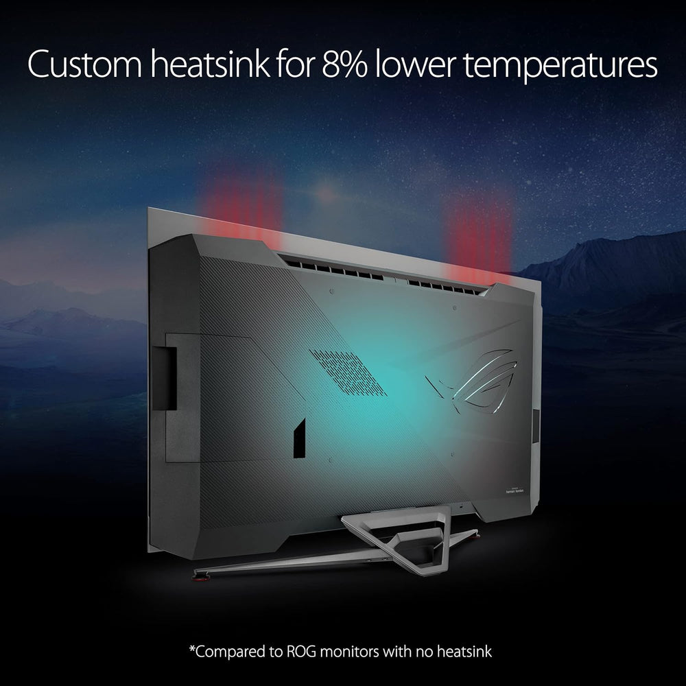 ROG Swift OLED PG42UQ gaming monitor – 41.5-inch 4K, OLED, 138Hz (overclocked), 0.1 ms (GTG), G-SYNC® compatible, anti-glare micro-texture coating, custom heatsink, uniform brightness, 98% DCI-P3, true 10-bit, HDMI® 2.1, DisplayPort™ 1.4
